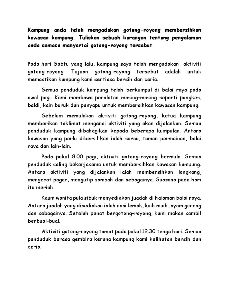 Karangan Pengalaman Aktiviti Gotong Royong Pdf
